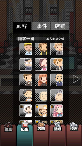 除了要兼顾游戏玩法、照顾小姐姐之外,随着菜品的解锁,你将偶遇更多顾客并触发事件。重新选址与装修店铺,是你获取利润的关键要点。