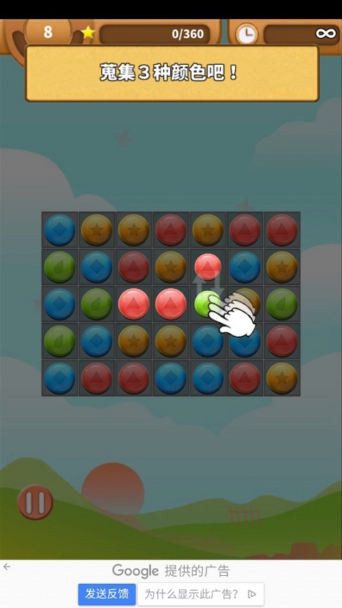 游戏方式相当简单,只要将同色的方块进行横向或直向进行3个以上的排列就可以。