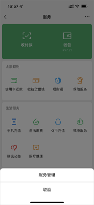 1、若您是使用微信付款的用户,需打开手机微信,进入APP后,点击切换至“我的”页面,随后点击“服务”选项。
