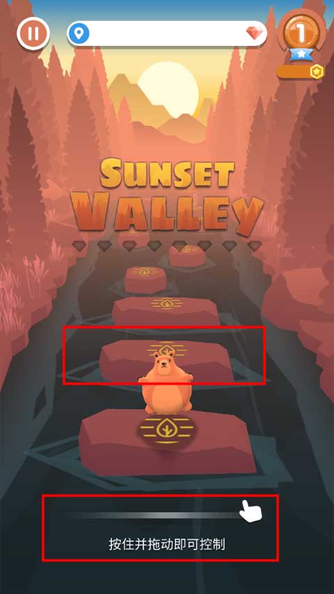 2、玩家只需按住并拖动,就能控制小熊。左右拖动可控制角色的方向,持续按住则能保证角色不断跳跃。
