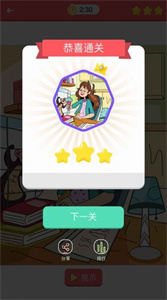 3. 玩耍评价标准为三颗星,在任务中寻找到物体所花费的时间越短,获得的星级就越高。