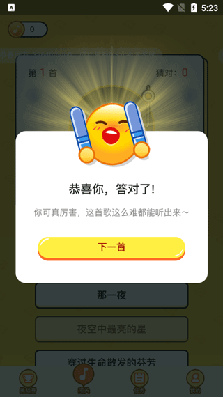 4、和全球猜歌爱好者的数据实现连通,比拼积分,一决高下,看看究竟谁才是真正的歌王。