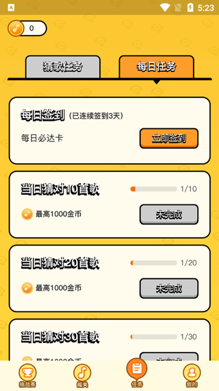 8、在下方的人物处,能够查看每日完成的猜歌任务,并领取相应奖励。