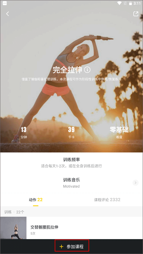 4、在这里你会看到训练的数量以及对这项课程的评论,点击“+参加课程”。