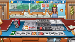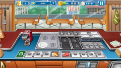 3、进入餐馆后,会有顾客陆续进来,顾客所需食物会显示在其身旁的对话框里,我们要做的便是制作对应的食物提供给顾客。