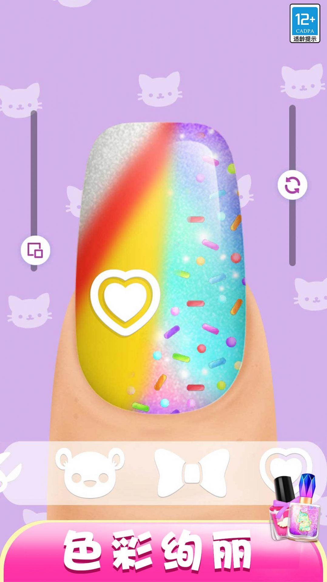 2、精致图形与逼真质感:游戏中的美甲造型,图形精美细腻,色彩缤纷多样,给玩家带来极为真实的感受,仿佛身临其境。不仅如此,游戏还展现出多种美甲材料的纹理与质感,助力玩家更深入地领略美甲的质感与美妙之处。