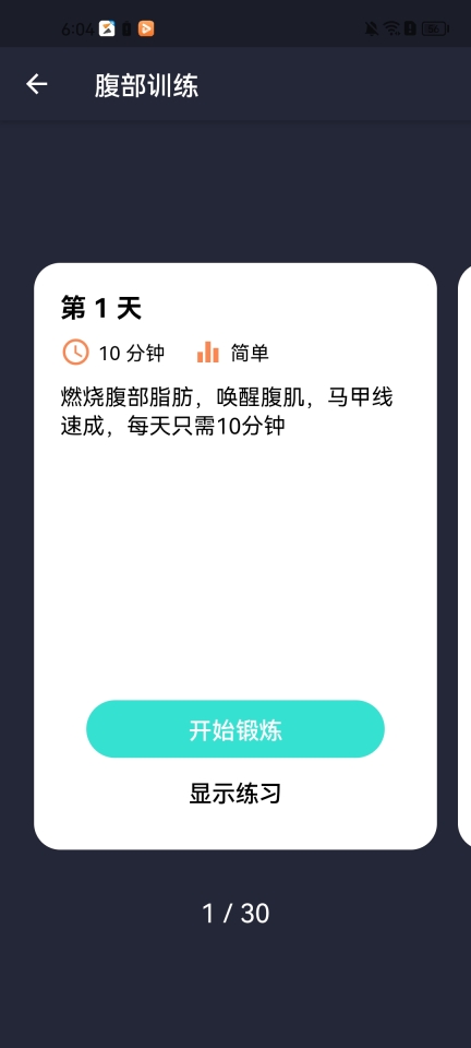 1、在APP里挑选你打算训练的身体部位进行锻炼,例如腹部训练。