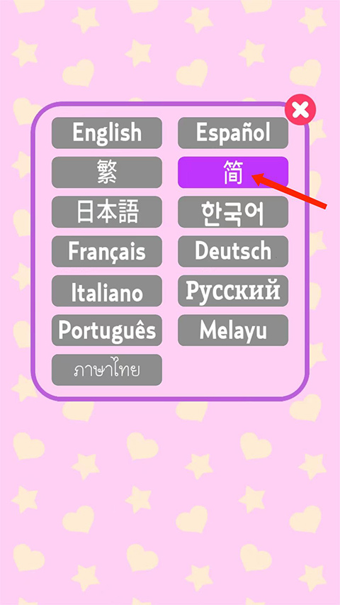 1、开启小偷独角兽游戏,第一步要选择语言,其中有简体、繁体、英文、日语、韩文等多种语言可供选择,在此选择【简体】选项。
