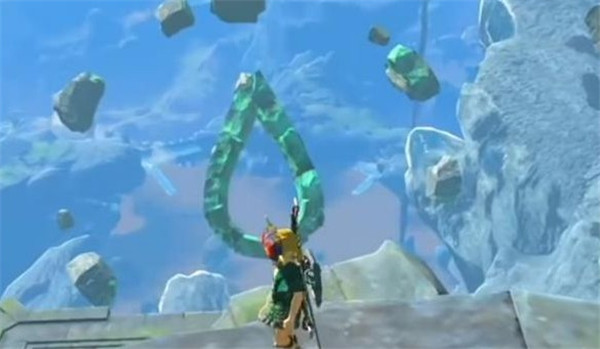 三、在空鱼之地最高点中央的空地上四处转转,你会发现一个水滴图形。把王之证射进这个水滴图案,就能解开任务谜题,随后便可以前往水之神殿。