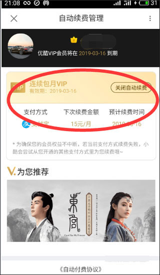 6、确定取消之后,可以看到刚刚的会员下方没有自动续费功能提示了。
