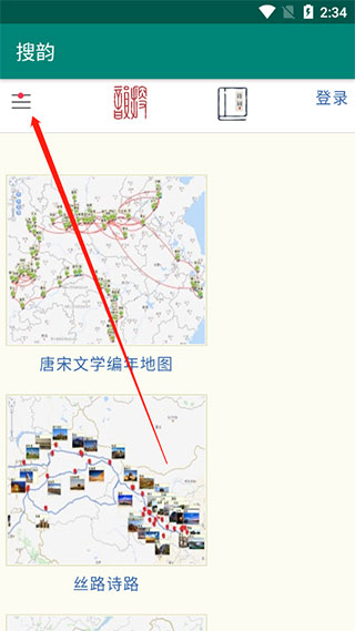 1、在本站下载安装搜韵诗词门户网站手机版,运行软件,进入主界面;