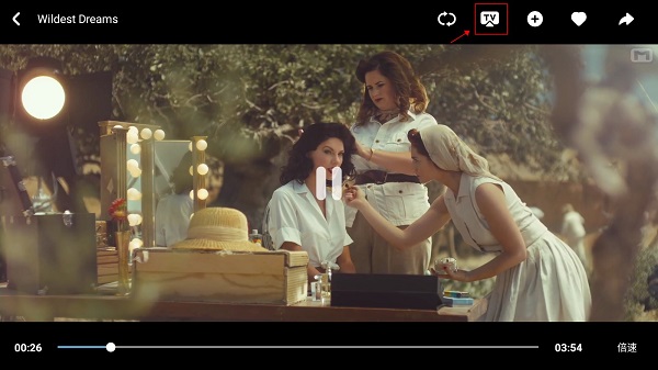 2、轻点屏幕任意一处,菜单选项就会弹出,在屏幕右上方找到“TV”图标,音悦台随即自动搜寻投屏设备,接着只需等待连接成功,就能把MV投屏到电视或其他智能硬件设备上。
