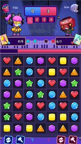 经典的三消玩法搭配上风格各异的魔幻游戏画风,你能挑选自己钟爱的角色,还能选择对手开启斗舞。游戏有着有趣的音效与丰富特效,玩家只需把相同的宝石连接起来消除,就能收获分数奖励。这里还能领取并使用更多道具,充分发挥道具作用,助力你轻松完成任务,而且操作简单又流畅。