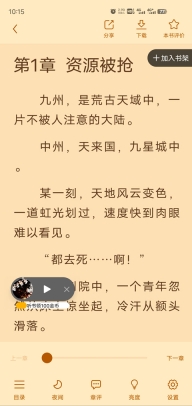 3、进入小说后,用户可以自己选择目录、亮度、夜间和设置等参数