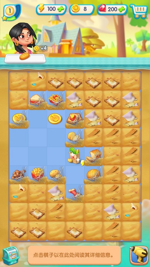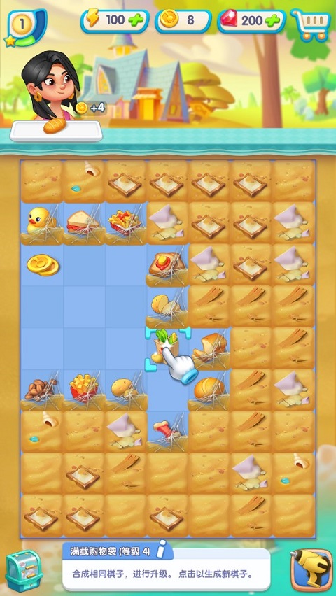 4、顾客所需订单位于棋盘左上角,通过不断进行合并探索操作,一直到合并出顾客需要的订单,此时点击“完成”,就能完成交付。