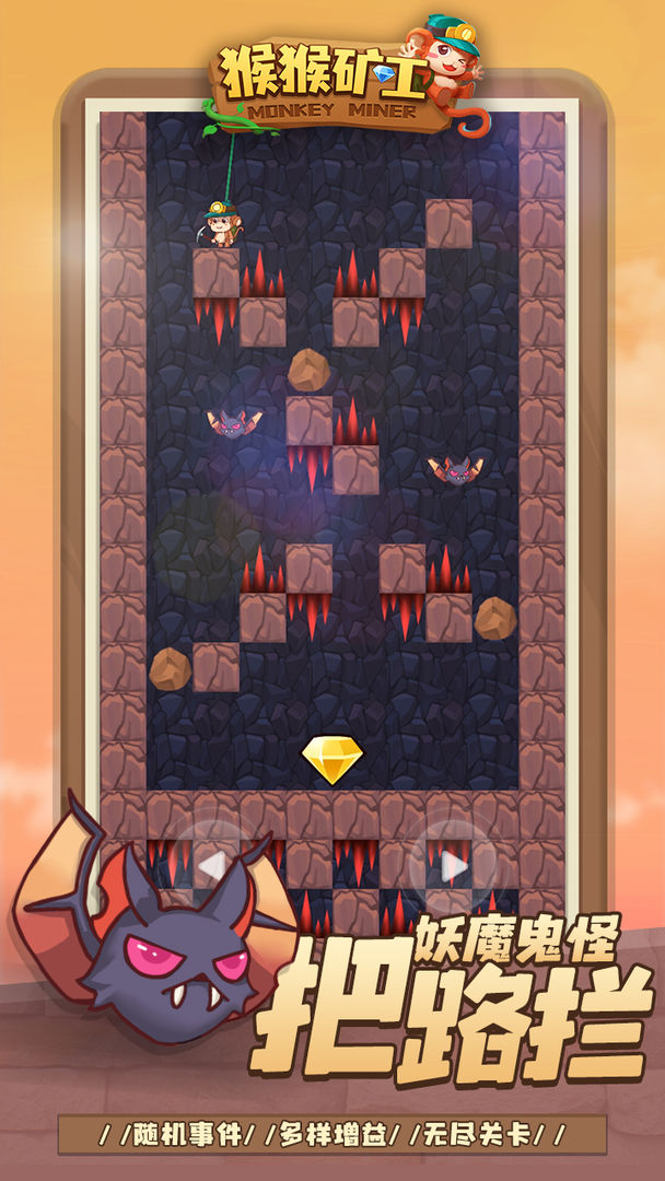《猴猴矿工》是一款画风简约可爱的休闲闯关游戏。在游戏里,你能在探索过程中体验到顶级的矿工全新挑战。这里关卡丰富,等你来战。大家一起努力探寻其中的奥秘,只要在最短时间内挖出相应分量的矿石,就能赢得胜利。