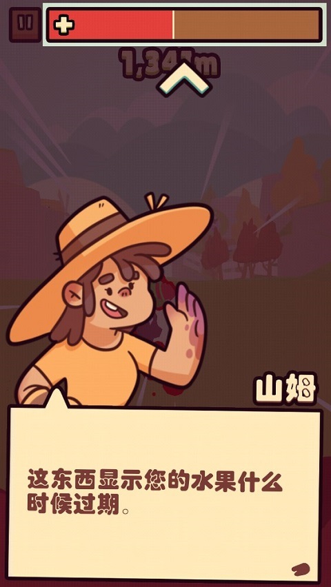 3、如图,顶部进度条展示的是水果过期时间。苹果在地面上,或者您撞上东西时,即视为掉落。使苹果在空中停留更久,可减少过期时间。