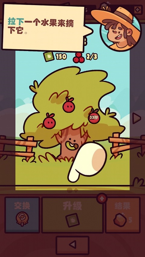 6、这些树木从开花到结果,需要经历一定时间的生长过程。在此期间,你能够使用金币来实现快速摘果。具体的采摘操作方法为:点击水果并向下拉动。