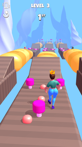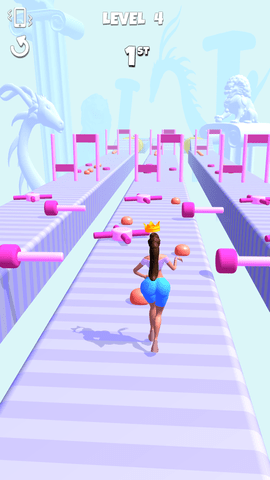 2、游戏里设置了大量的关卡,在游戏过程中,玩家拾取的硅胶数量越多,角色的屁股就会变得越大。而令人意想不到的是,最终通关画面呈现的竟是展示翘臀的场景。