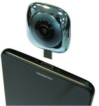 2. 把全景相机连接到具备Type - C接口的手机,开启华为全景相机App,就能拍摄全景图片与视频。