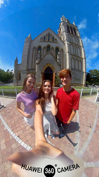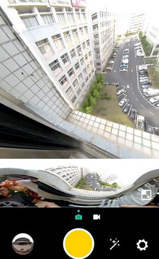 3、插入USB接口后,手机会自动开启APP,并进入全景相机的拍照模式。滑动手机屏幕,就能预览到周围360°无死角的景色。
