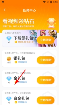 4、完成相应的平台任务就可以获取少量的砖石福利。