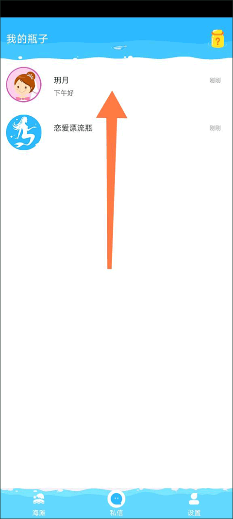 1第一步,打开恋爱漂流瓶app,接着点击右下角图标,进入私聊界面。
