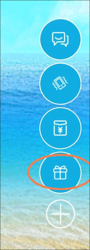 3、进入后,点击箭头指向的加号,在弹出的列表里点击礼物图标。
