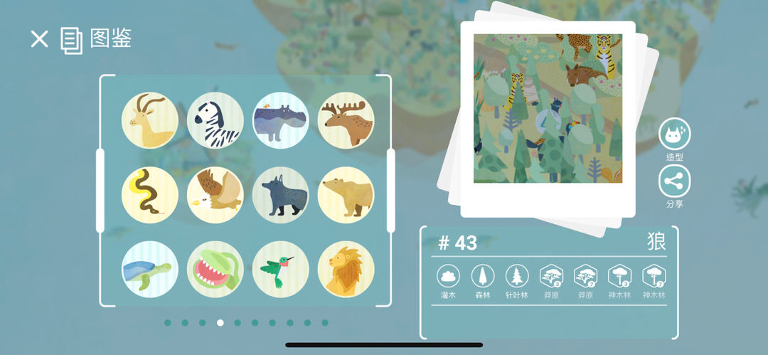 需要一定数量的森林覆盖率。至少森林里的动物都要开启图鉴。
