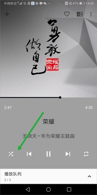 2、接着在打开的播放页面中点击左下角随机播放图标(下图绿色箭头所指)