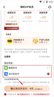 2、进入会员开通页面,需先从四个套餐中挑选其一,接着选择支付方式,当前软件仅支持微信与支付宝付款,选定一种方式后即可完成付款。