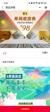 3、随即进入会员购买页面,成为平台会员后可享七折优惠,适合常住酒店的用户。