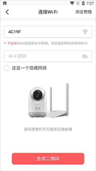 3、摄像机暂不支持连接WiFi名称及密码中含特殊字符的网络,若要连接,请事先将WiFi名称及密码更改为纯英文、纯数字、或英文+数字。