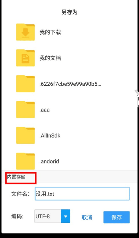 4、轻点文件名上方的“存储”选项,挑选我们打算保存文件的文件夹,接着点击右下角的“保存”按钮,就能把文件保存至手机中。