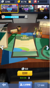 1、人才市场:人才市场共分初级、中级、高级三个等级。于任意一个人才市场,花费银币进行招聘,便能随机招募到一位人才。需注意,人才市场每日的招聘次数存在限制,所以每天最好将招聘次数用完,不然公司很可能陷入无人可用的尴尬局面。