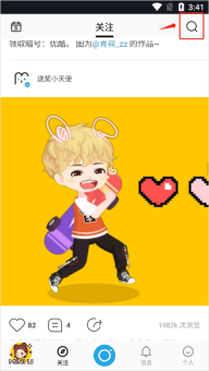 1、你可以主动邀请好友,在广场页点击右上角“搜索”键。