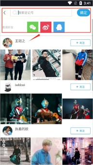3、当然你也可以在足记结交好友,在广场页发现好看的图片和用户,可以点击头像旁的“关注”或“+”进行关注。