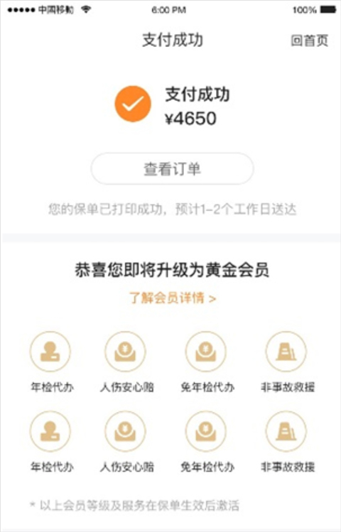 支付保费后,您可以查看保费支付结果,并前往保单中心进行保单查看