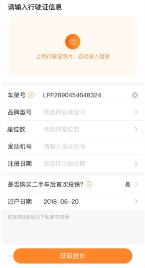 如您尚未绑定爱车,需要车主的身份信息、车辆的行驶证信息作为报价的基本信息