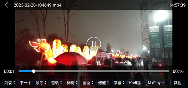 1. 视频播放功能涵盖倍速调节、清晰度切换、字幕操作(包括内封字幕、云盘字幕文件、射手匹配搜索)、音轨切换,还支持调用Kodi、MxPlayer进行播放等。