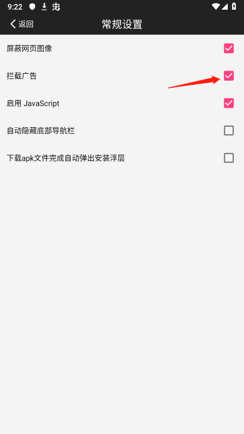 4、勾选拦截广告选项,如此在下载视频时就能避免触碰到小广告。要是你希望看到浏览器中的图片等内容,也可以取消屏蔽网页图像的勾选。