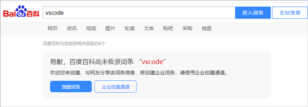 1、在创建词条前,需先用百度账号在手机浏览器中打开并登录百度百科。接着,在百度百科内搜索该词条及其别名、简称等。说不定这个词条已被收录,只是名称与你所知晓的有所不同。比如,下图展示在百度百科中搜索“vscode”,结果显示该词条尚未创建,但有其全称。