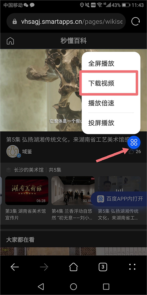 百度百科app没有提供下载方式对其内部的秒懂视频进行下载的,但是用户可以通过其分享的链接地址在浏览器中进行下载,其操作方法如下: