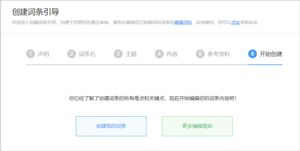 3、此时进入【创建词条引导】页面,阅读相关编辑须知