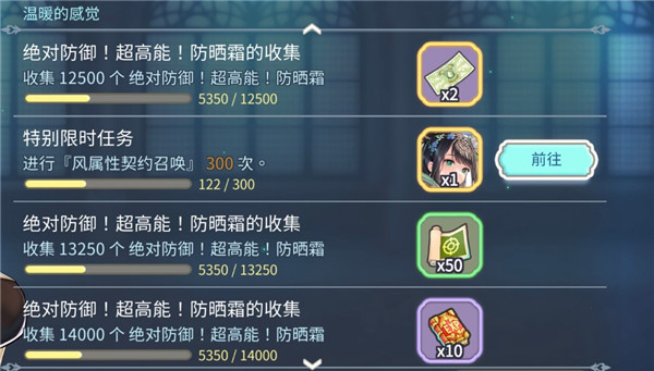 完成主线1、降临任务以及扫荡15次经验防晒霜任务,用防晒霜兑换十连抽券,领取兑换码的2000钻石。要是前十抽左右都没抽到好东西,就可以换个账号重新开始,这类账号没必要抽满200抽。