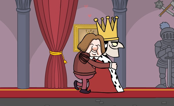 3、举个例子,某一关中,国王要对国民发表演讲,然而他紧张得满头大汗,讲出的话也完全不着边际,十分搞笑。