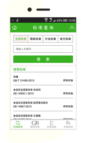 1. 标准查询:支持输入标准名称的关键词来开展模糊分类检索。能从近30000个标准里迅速获取所需标准,以及其有效性、替代关系等相关信息。
