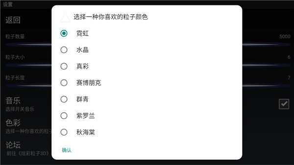 3、在此可以选择【色彩】,选择一种你最喜欢的粒子颜色