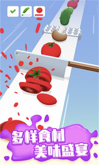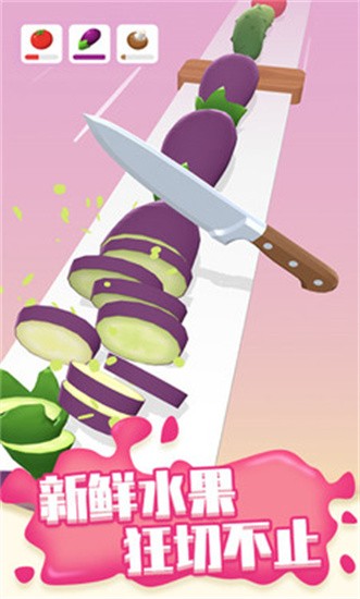 1. 通过点击屏幕操控你的菜刀来切割水果与蔬菜,持续将它们切成片状。