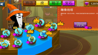 5、【雕像炮台】雕像恢复部分生命值并通过发射强激光20s来保护自己;